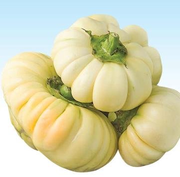 African eggplant (Solanum aethiopicum). Bitter flavor african eggplant popular in West Africa. Upright plant habit. Fruits are very light green (almost white), 120 to 180 g weight, flattened and deep ribbed, 7 cm diameter. Maturity : 65-75 days after transplant.