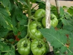 Độ chín: 60 – 65 ngày sau khi cấy và thu hoạch kéo dài 25 – 30 ngày. Năng suất cao, quả hình tròn hơi dẹt, có vai xanh trước khi chín và màu đỏ tươi khi chín hoàn toàn, trọng lượng trung bình: 140- 160 gam / quả, độ chắc tốt.