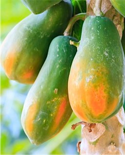 Une papaye de type reves seeds Tainung No 2 très populaire. Largement utilisé en Asie, ainsi qu’en Amérique du Sud et centrale pour l’exportation et les marchés locaux. Gros fruits à bout de fleur pointu, pesant environ 1,2 kg (2,6 à 2,7 lb). La chair est rouge orangée, tendre, de bon goût et de qualité. Tolérant au virus de la tache annulaire de la papaye.