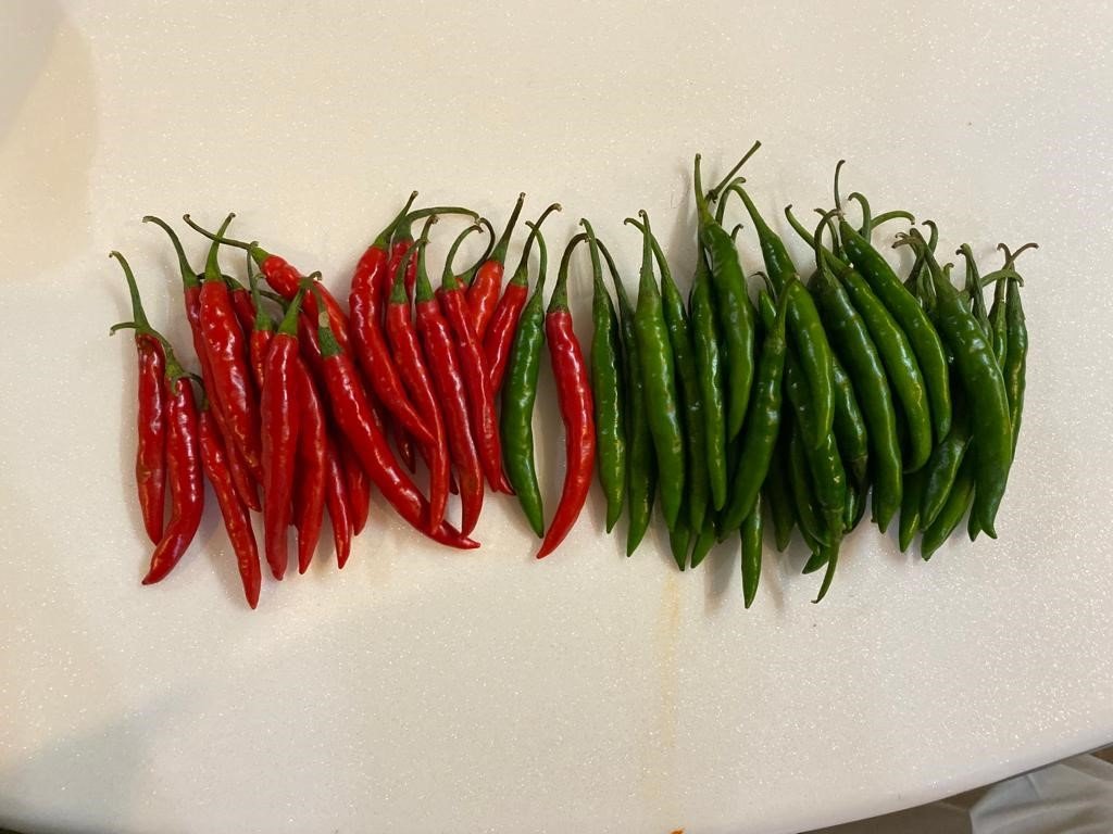 Très chaud, précoce (maturité 55-60 jours) et extrêmement prolifique! F1 MH-1107 est un petit piment, au port de fructification dressé. Fruits très piquants, 5-5,5 cm (2 po) de long et 0,8 cm (0,32 po) de diamètre, 3-4 grammes de poids. La plante a une uniformité parfaite et une nouaison prolifique. Convient pour le marché frais en tant que couleur verte ou rouge. Aussi bon pour la déshydratation. Tolérant à Phytophtora, TMV, flétrissement bactérien